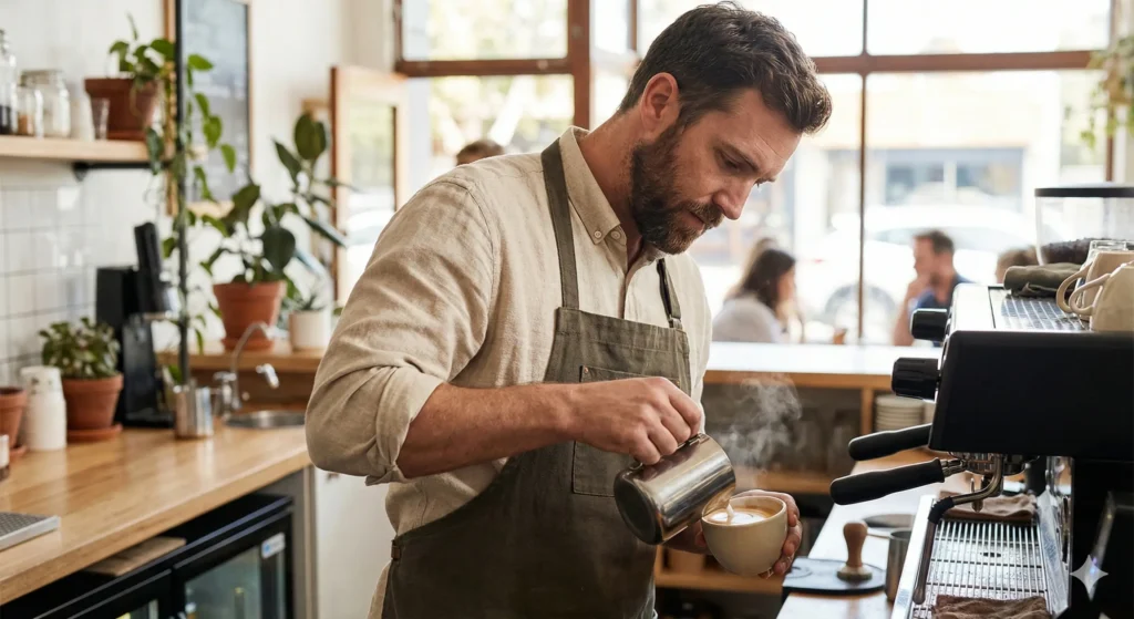 Im Service zählt Performance. Ihre Uniform muss gut aussehen, aber vor allem harte Schichten überstehen. Unsere Fasern bieten eine natürliche Klimaregulierung, die Polyester weit überlegen ist. Kein „Plastik-Gefühl“ auf der Haut, auch wenn es in der Küche oder hinter der Bar heiß hergeht.